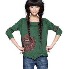 正品 2014春装新款 女 绣花针织衫 开衫外套浮桑初 绿色